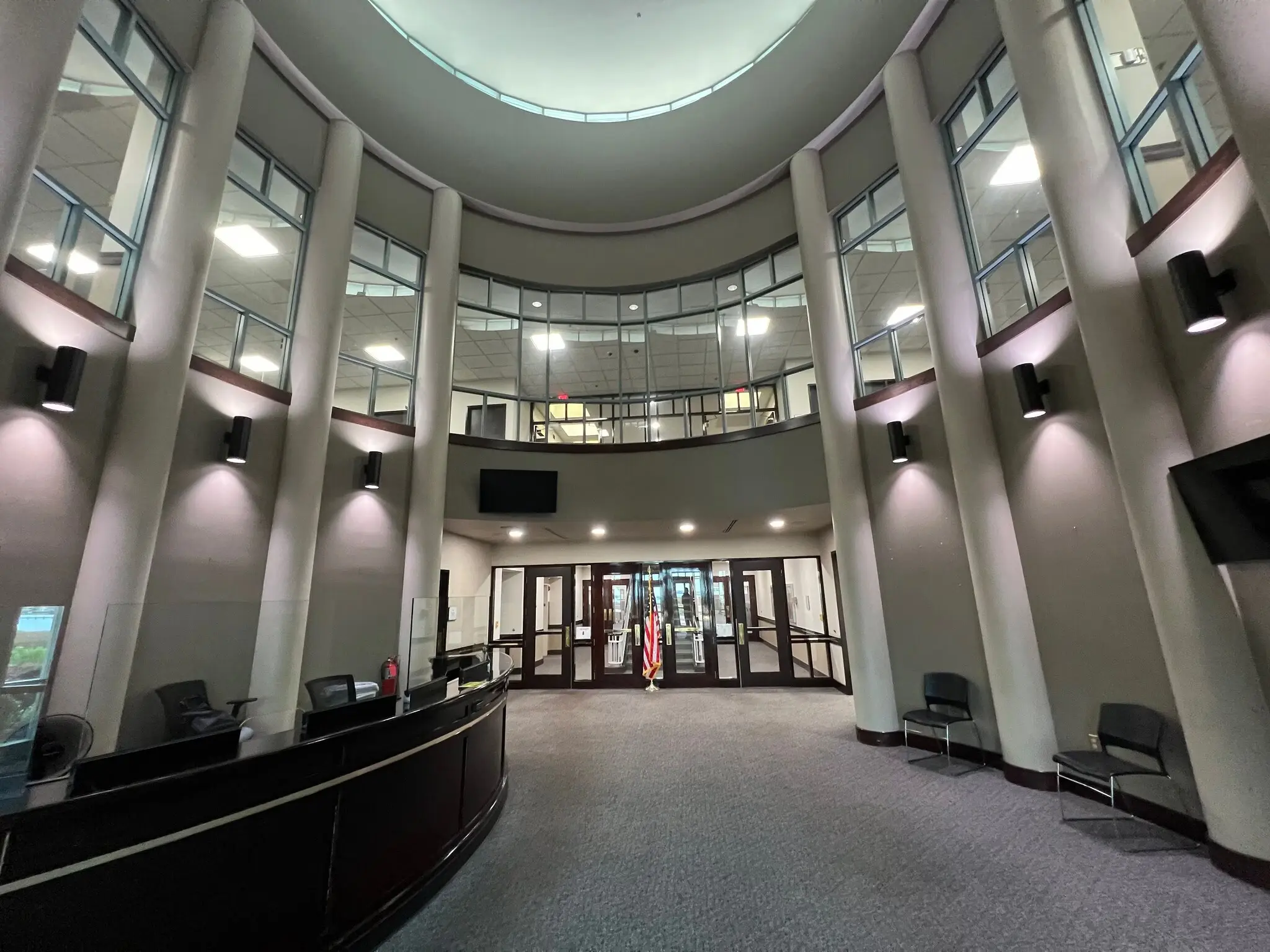 - ◾ 800 SF atrium lobby, rotunda skylight, curved reception desk, reception/guard rooms
